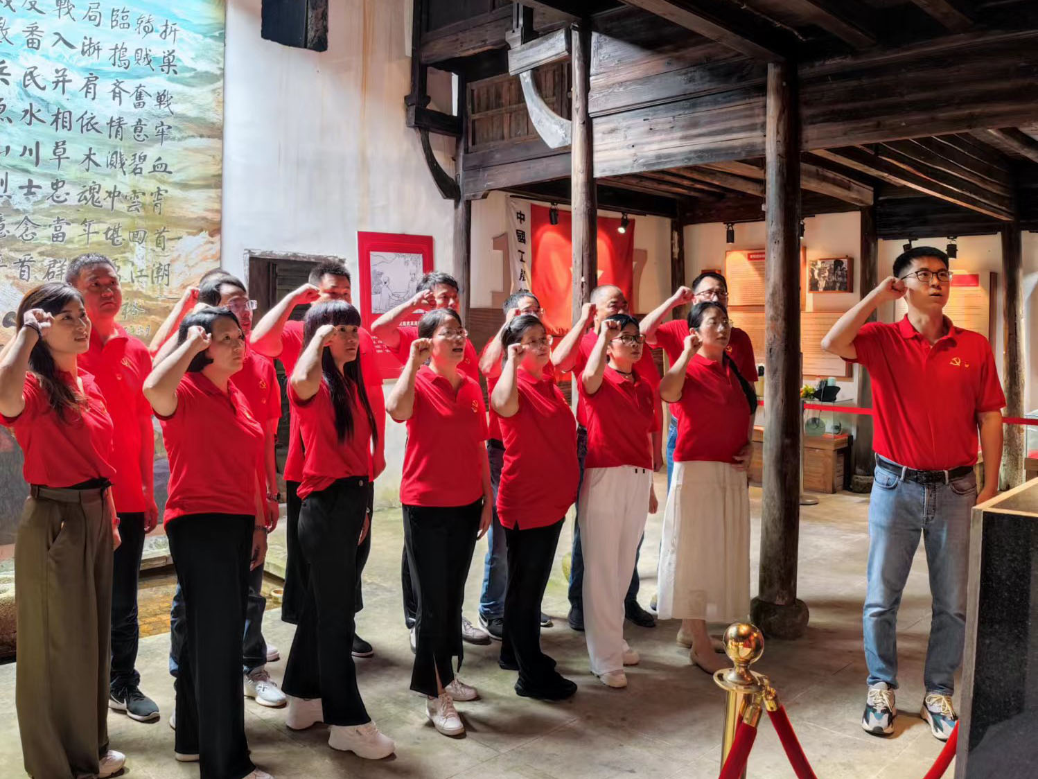 ? ? 金廈黨總支的黨員們在黨支部書記傅融的帶領(lǐng)下參觀了銀坑村粟裕將軍紀念館,感悟革命初心,重溫入黨誓詞。
